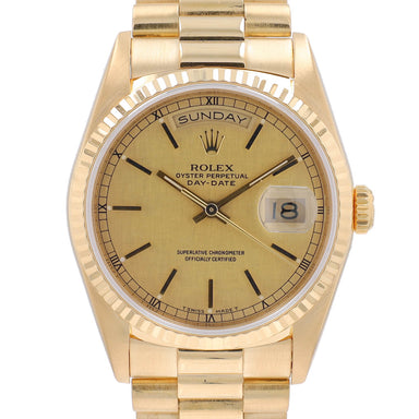 View full detailsSPECIFICATIONSWATCH DETAILSSku: WA18238-104Box: NonePapers: NoneYear: 1990Brand: RolexModel: Day-DateCondition: Pre-ownedReference Number: 18238C...