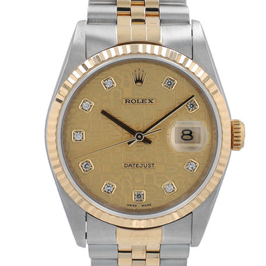 View full detailsSPECIFICATIONSWATCH DETAILSSku: WA16014-5871Box: NonePapers: NoneYear: 1985Brand: RolexModel: DatejustCondition: Pre-ownedReference Number: 16014CA...